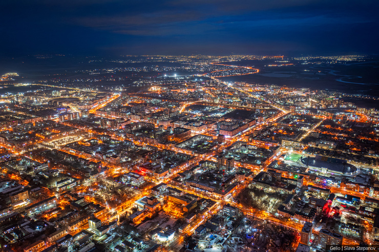 Город расположен в Южной Сибири, на слиянии рек Енисея и Абакана. Это столица Хакасии и второй в списке городов России в алфавитном порядке. Началось всё с острога, который построили в 1675 году. Со временем казачья крепость превратилась в село Усть-Абаканское, а с 1931 года Абакан официально считается городом. Сегодня здесь живёт 185 тысяч человек, а на фото вечернего Абакана видна чёткая планировка городских кварталов.