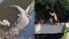 Спокойная прогулка у острова Дак-Ки во Флориде превратилась в необычное зрелище: стая пеликанов устроилась прямо на носу лодки и сопровождала её, словно наслаждаясь бесплатным круизом.