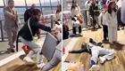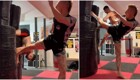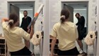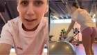 Девушка воспользовалась редким моментом, когда зал оказался полностью свободен, чтобы спокойно потренироваться и записать видео. Но даже в такой обстановке не всё идёт строго по плану — иногда тренировки приносят неожиданные моменты.