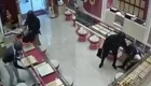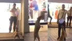 Эвелина стояла на лестнице и раскладывала товар на полках. В этот момент к ней сзади подошел посетитель и стал распускать руки. Девушка оказалась не робкого десятка и смогла постоять за себя.