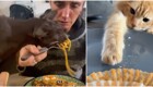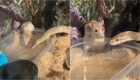 Девушка хотела накормить питона крысой, однако ситуация пошла неожиданным образом — животные не проявили агрессии и со временем стали спокойно сосуществовать. По словам хозяйки, позже они даже вместе пили из одной поилки. В итоге крыса осталась жить у неё и получила имя Снэк.