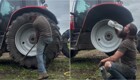 Замена шины на тракторе — непростая и физически тяжёлая задача, требующая силы и навыков. На видео мужчина самостоятельно справляется с работой, демонстрируя выносливость и уверенность в сложных условиях.