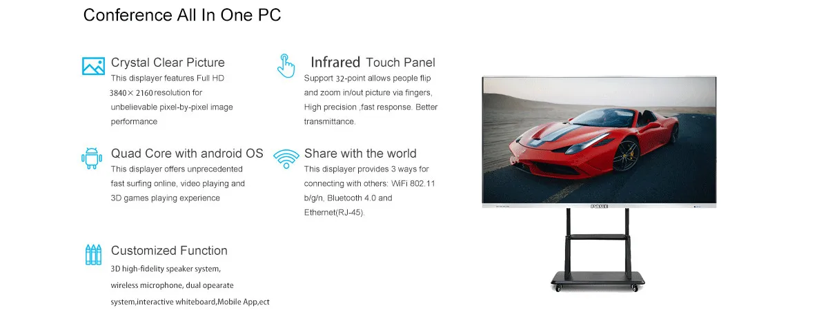 55 65 75 85 86 100 110 Inch HD Smart Board With 4K Display Interactive Smart Boards for Meeting Room Offering Multi Touch