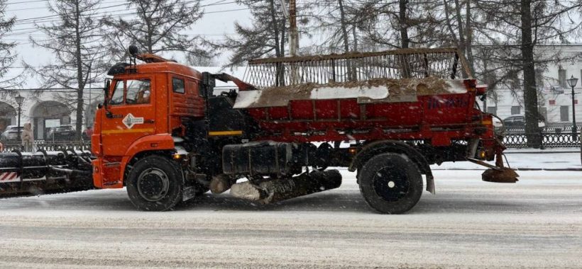 25 дорожных машин убирают снег с городских улиц
