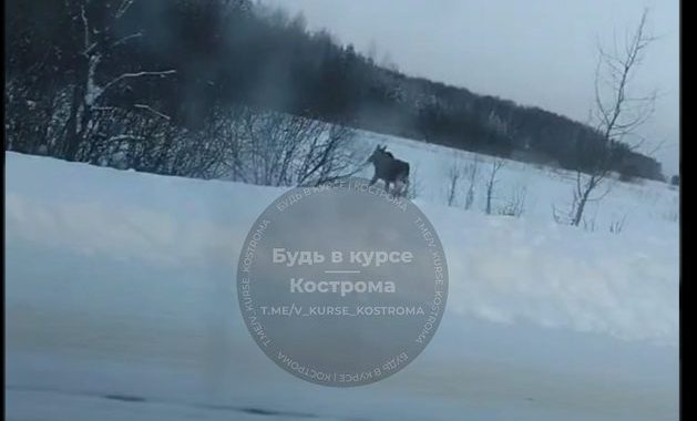 Компанию лосей заметили на трассе под Костромой