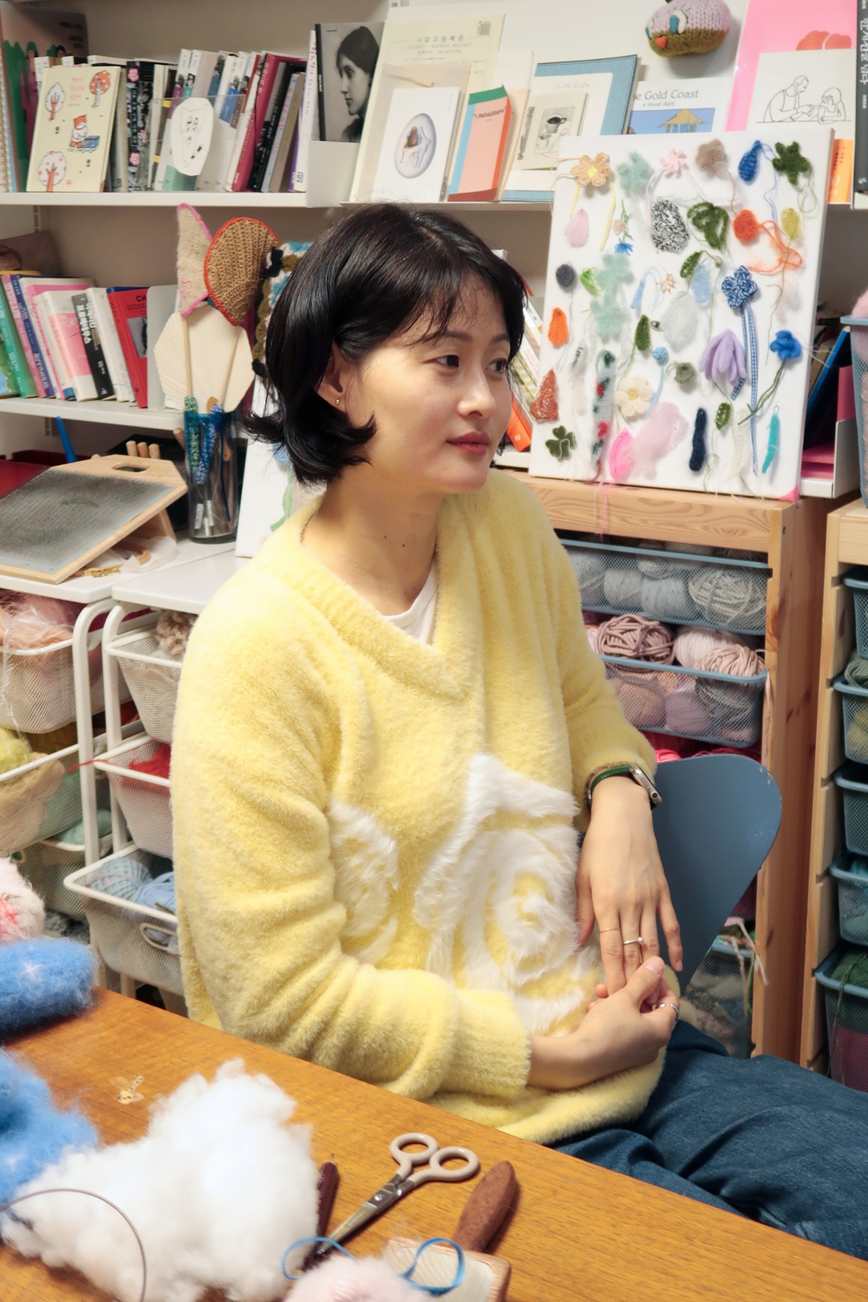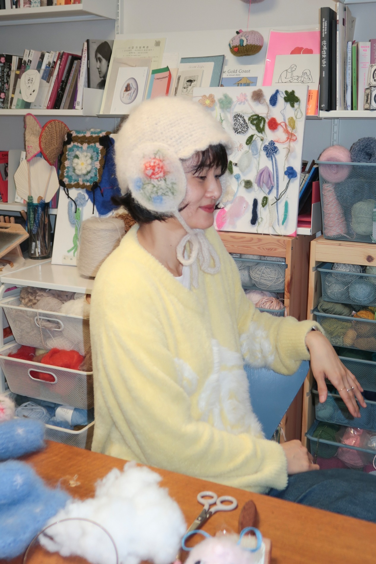 Sarahs Moon X Hairy Rose V-Neck Knit (Yellow)