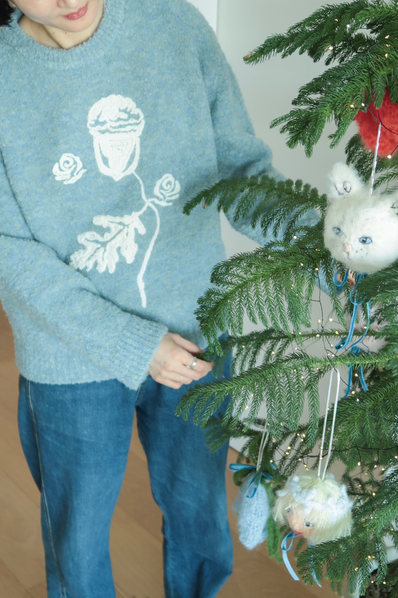 Sarahs Moon X Nest Acorn U-Neck Knit (Sky Blue)