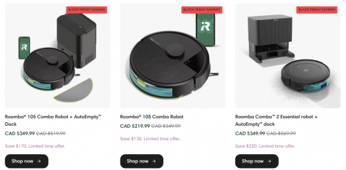 iRobot Canada has Black Friday deals on now, with savings of up to $500. These offers are valid until November the 27th. You can also save up to 40% off select accessories using the promo code BLACKFRIDAY. Shipping is free on orders of $44.99 or more, and here are some of the Black Friday deals: