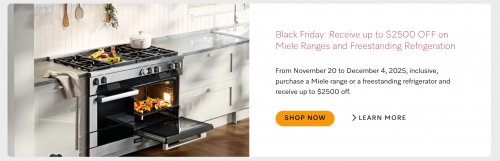Black Friday offers are available at Miele Canada, and there are savings of up to $2,500 on select appliances. There will be price increases on all appliances beginning January the 9th, so if you’ve been considering a purchase you will want to keep that in mind. From now until December the 4th you can save up to $2,500 on Meile ranges and free standing refrigeration, get up to $400 off Miele CM5310 Silence Countertop Coffee Machines, and here are some of the other offers:
