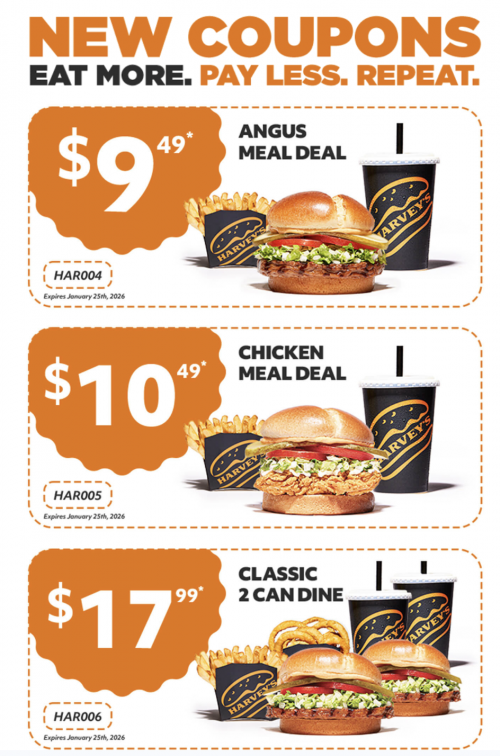 Harvey’s Canada has new coupons available now. You will find these coupons in your app, and all of these offers are valid until January 25, 2026. Here are the new coupon offers available at Harvey’s Canada: