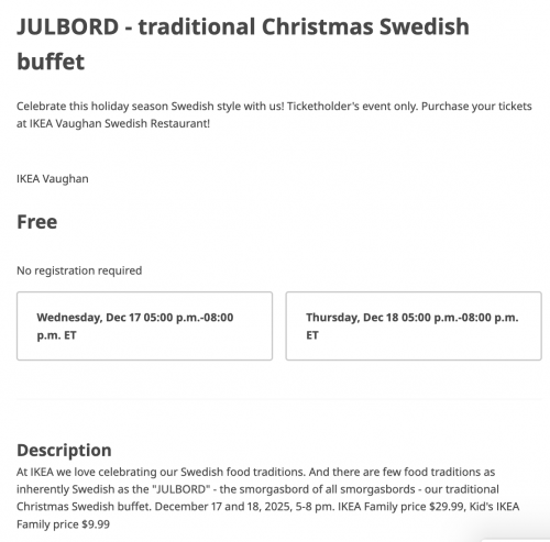 Celebrate this holiday season Swedish style with us! Ticketholder’s event only. Purchase your tickets at IKEA Vaughan Swedish Restaurant!