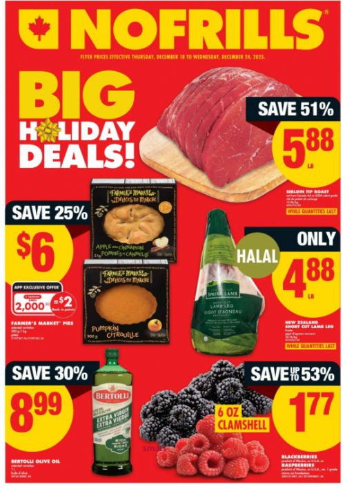 The countdown to the big day is on, and No Frills has some great deals on things that you might need starting tomorrow. One of the deals this week is Sirloin Tip Roast for $5.88 a pound, which is a savings of 51% off. It’s available while quantities last so be sure to get to No Frills before the weekend if you are planning on serving it for the holidays. Here are some of other deals that start tomorrow at No Frills: