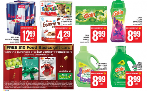 This week you can get a free $10 Food Basics gift card when you purchase a $50 Vanilla Visa at Food Basics Ontario. This offer is valid until December the 31st, and while quantities last. If youâll be visiting Food Basics for this gift offer, here are some of the other deals available that are advertised in this weekâs flyer: