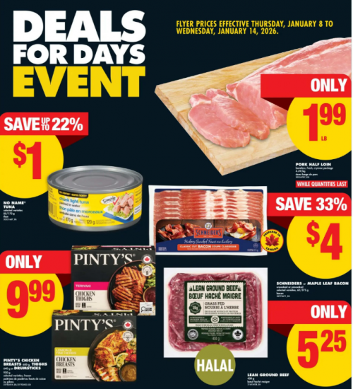There are several great deals coming up in the week ahead at No Frills during there Deals For Days Event. Donât forget to save any of your current PC Optimum offers that you might like to use next week, as your new offers will be available at midnight. Here are some of the items on sale at No Frills from January the 8th to the 14th: