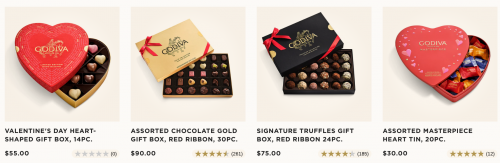 Purchase chocolates for your Valentine at Godiva Canada, and save 20% off sitewide for a limited time. To get this discount on your purchase you can enter the promotion code VALENTINE at checkout. There is also a gift with purchase offer available now. With this limited time offer you will receive a free 7 piece assorted Masterpiece Heart Tin when you spend $150 or more. The tin will be automatically added to your cart if you qualify, and you can also get free shipping on your order of $50 or more with the code FREESHIP50. Here are some of the Valentineâs Day chocolates available at Godiva: