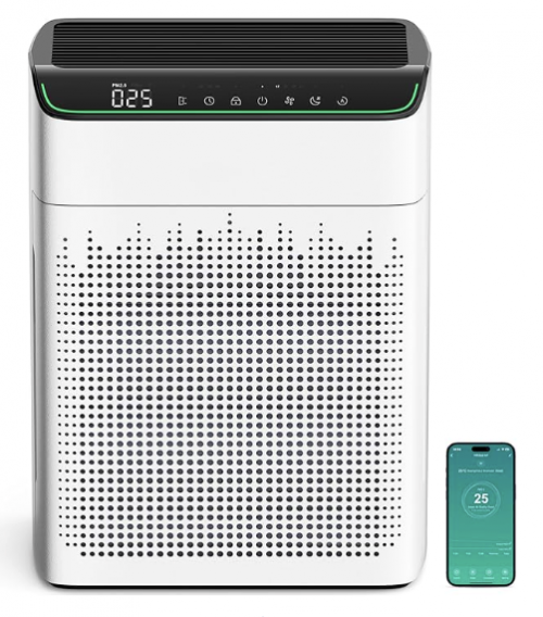 - Get Air Purifiers for Bedroom Large Room Home, Up to 1690² with PM 2.5 Air Quality Monitor, Wi-Fi and Alexa Compatible, HEPA Filter Double-sided Air Inlet for Smoke Odor Dust, 23dB Quiet Ivory, for $75.39, (When you Redeem The SmartCanucks Exclusive Extra 87% off Promo Code 49S9E2ZY), Save 87% off. Available in 5 Colours, Ivory, Black, Dark Blue, Grey, and White