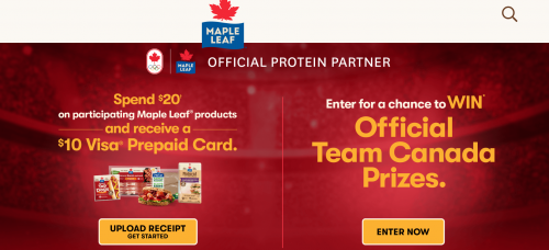 A new promotion is available from Maple Leaf Canada, and when you spend $20 or more on participating products you will receive a $10 Visa Prepaid Card. This offer is valid from January the 12th to February the 22nd, and the products must be purchased in one transaction. A complete list of participating products is available through the link below, and the following products are excluded: Maple Leaf Canned Meat, Maple Leaf Fresh Pork and Maple Leaf Rotisserie Chicken Legs, Pork Tenderloin & Pulled Pork, Big Stick as well as other products.