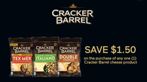 Click here to get your coupon for $1.50 off the purchase of any Cracker Barrel cheese product.Â
