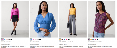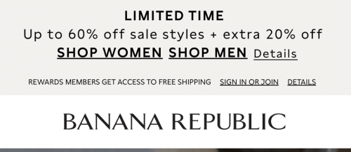 Everything is currently 40% off at Banana Republic Factory Canada, and for a limited time you can save an extra 15% on your purchase. This offer is available until February the 2nd, and the additional discount will apply automatically in your cart. You can also save an extra 50% on clearance styles, and this discount will also be automatically applied. Members will get free shipping on orders of $50 or more.
