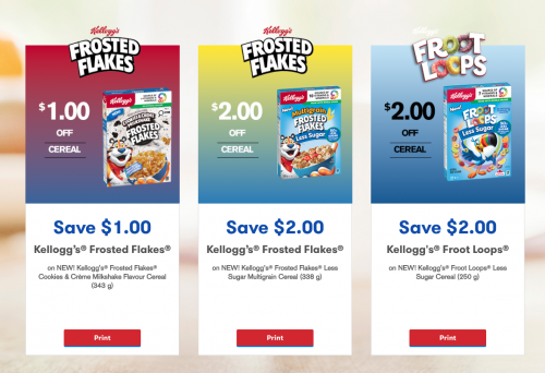There are several new Kelloggâs printable cereal coupons available, and you can find these new additions through the link below. These coupons can be printed twice per browser, and they should be valid for at least a month from the time they are printed. Here is the current selection of coupons that you can print: