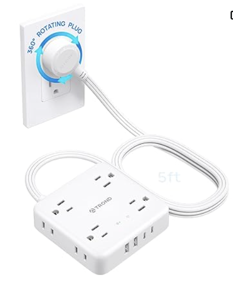 Click here to Save 12% on TTROND 360° Rotating Flat Plug Power Bar with 2 USB C Ports, 8 Widely Spaced Outlets, 5FT