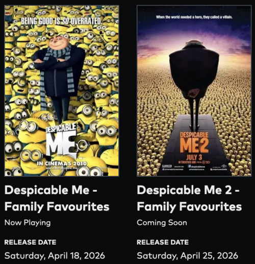 - Saturday, April 18, 2026: Despicable Me