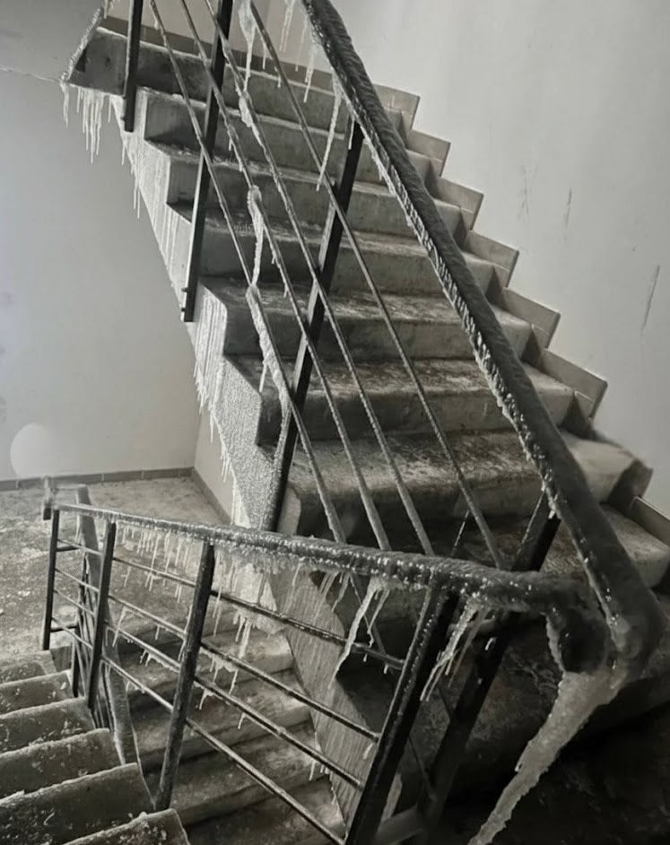 В Киеве однин из подъездов жилого дома ПОЛНОСТЬЮ покрылся толстым слоем льда — изображение опубликовали украинские СМИ ⚡️