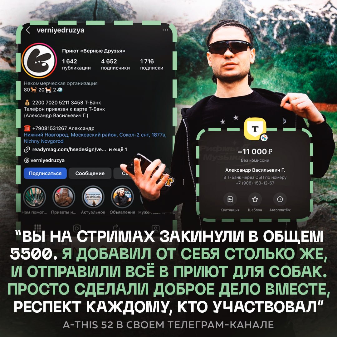 🙏 A-THIS 52 помог приюту для животных — он отправил деньги с донатов от фанатов и удвоил сумму из своего кармана — в итоге вышло 11 тысяч